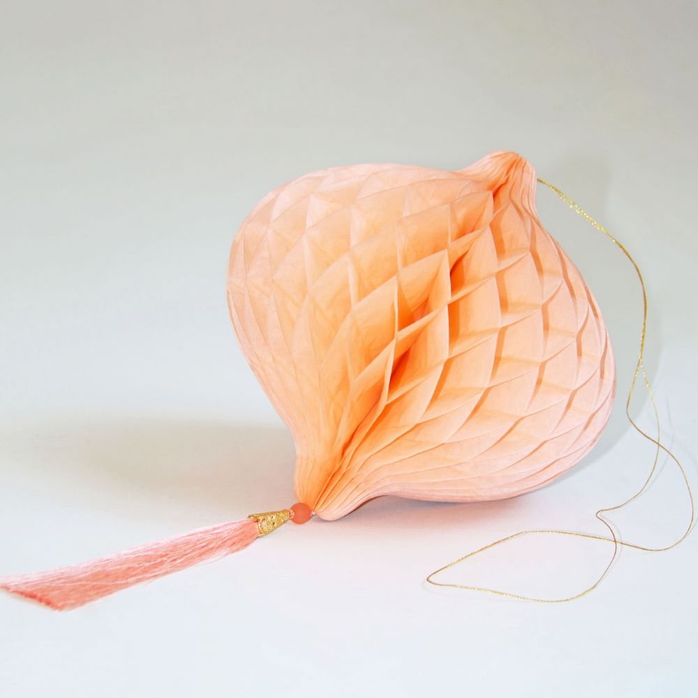 Бумажное украшение Шар-соты с кисточкой, персиковый - 1шт.