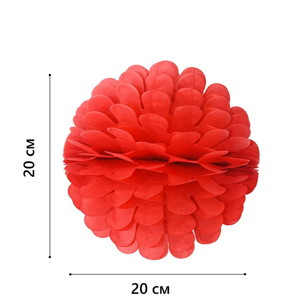 Бумажное украшение Цветочный шар-соты 20 см, красный