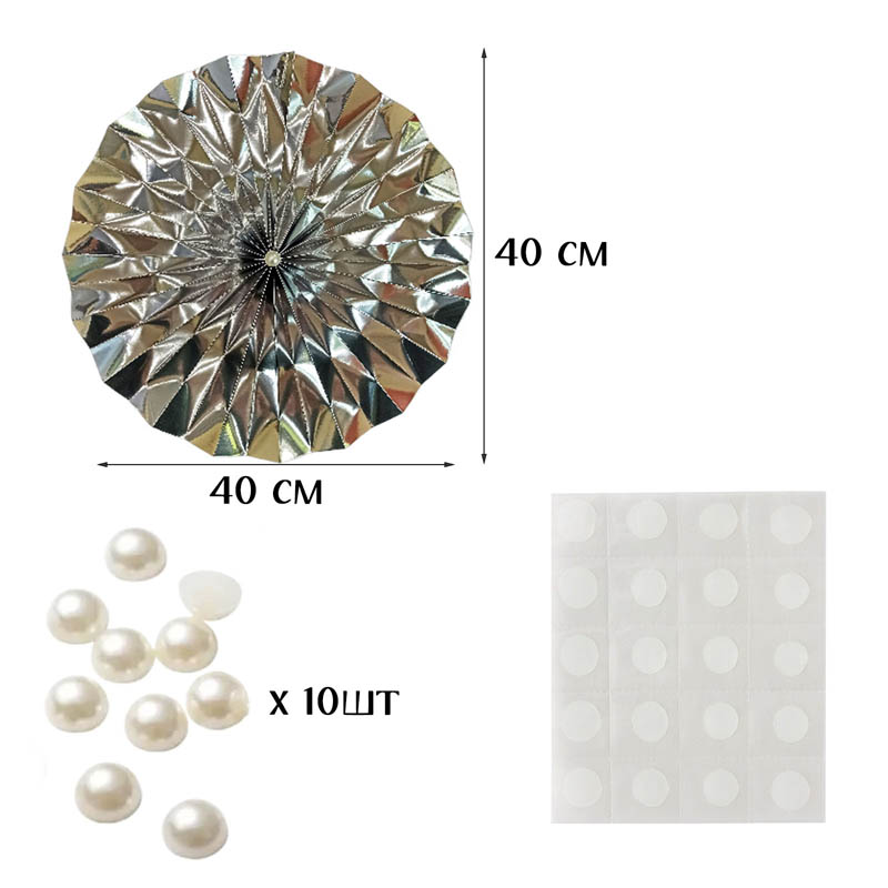 Фанты фольгированные с жемчужиной НАБОР 10шт х 40см, серебро