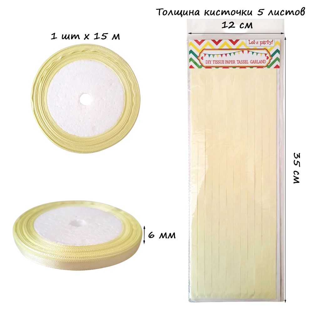 Гирлянда тассел 12 кисточек по 5 листов, айвори