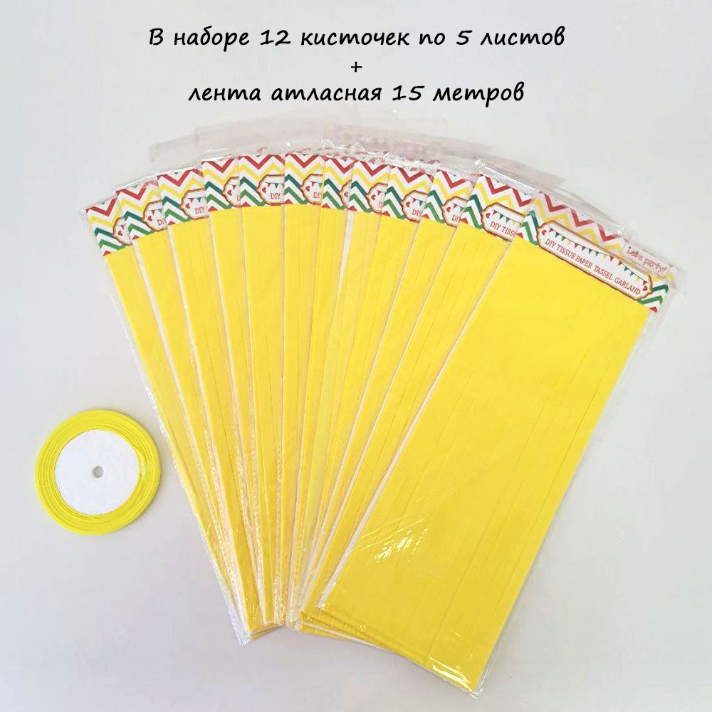 Гирлянда тассел 12 кисточек по 5 листов, желтый