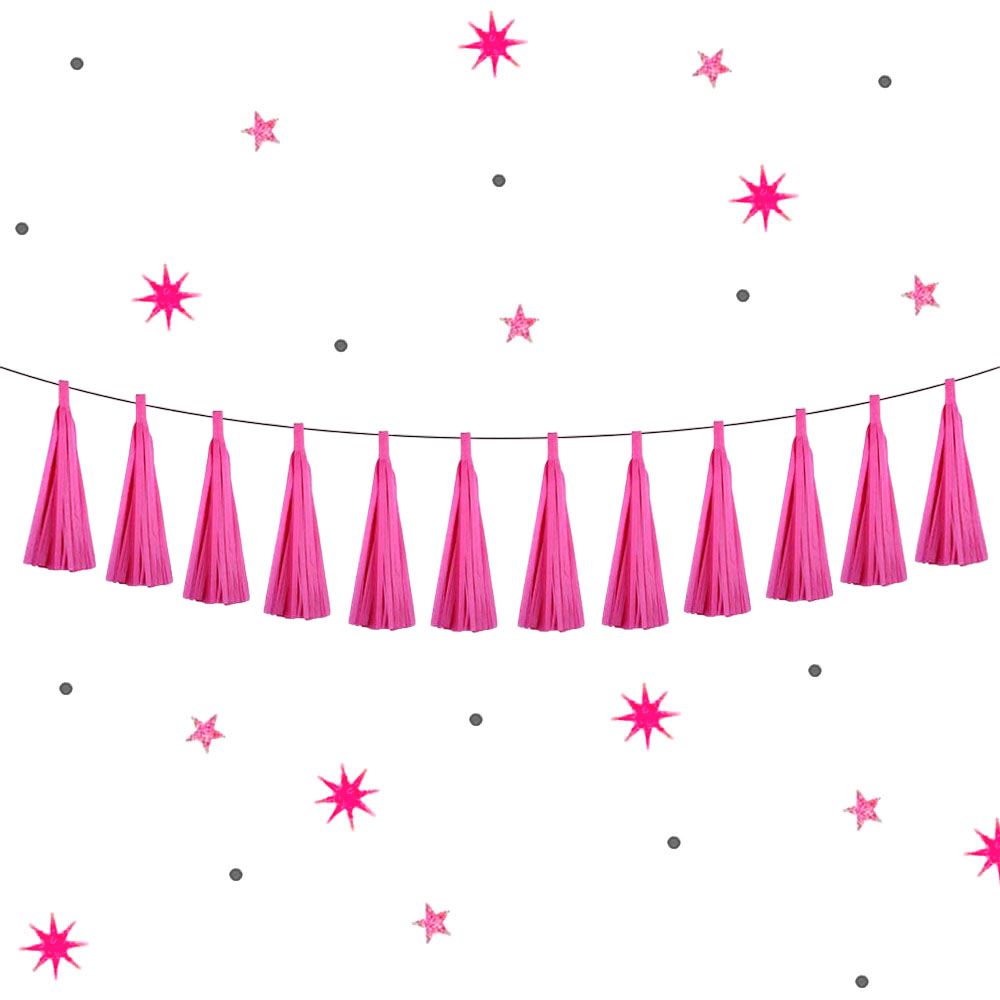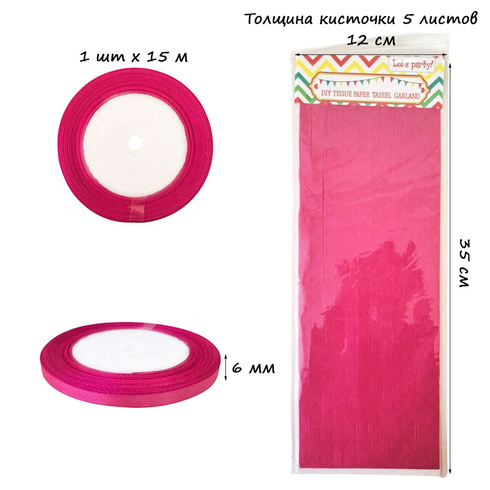Гирлянда тассел 12 кисточек по 5 листов, малиновый