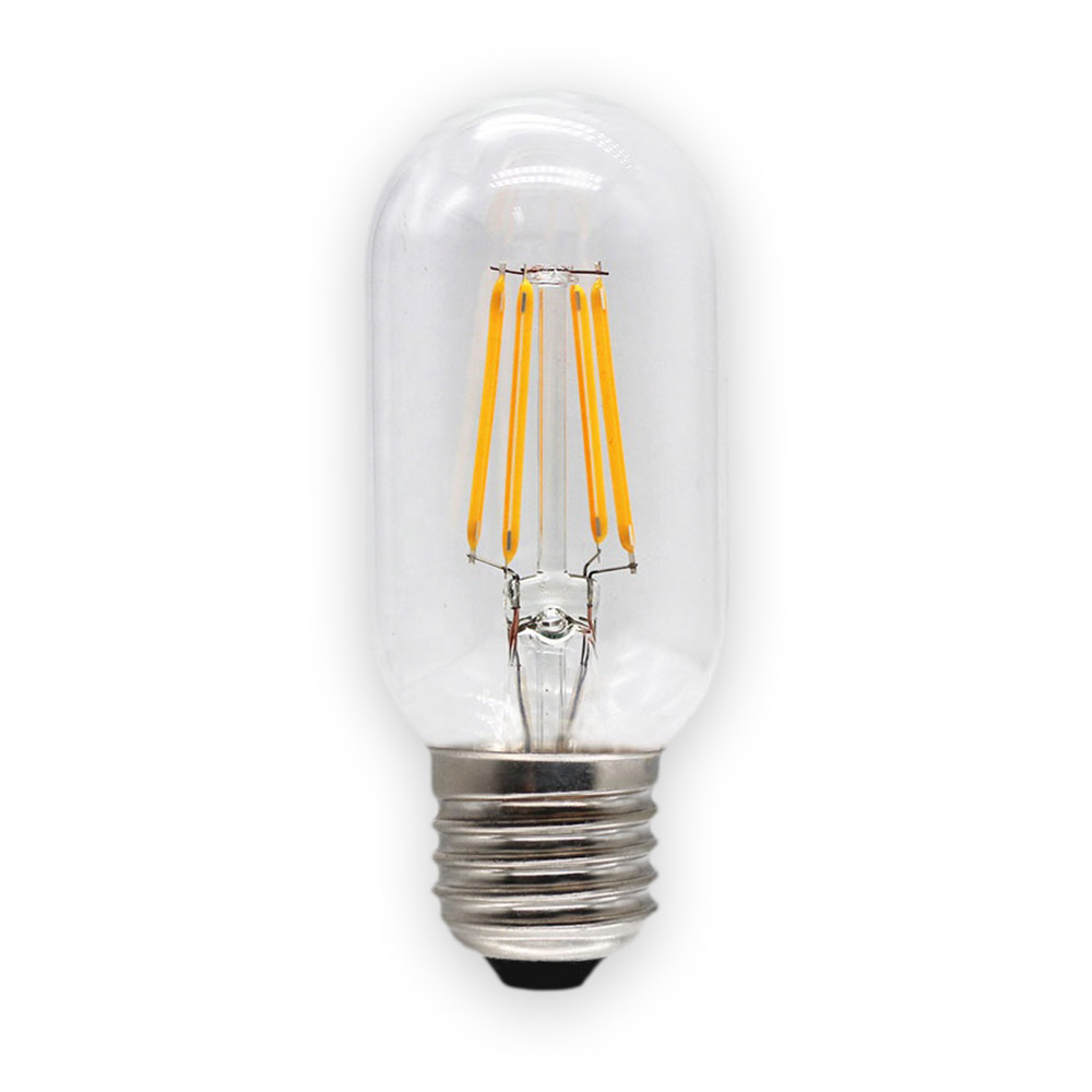 Лампа светодиодная Т45 E27 W4 K2700 – филаментный источник с потребляемой мощностью 4Вт. Тепловой диапазон испускаемого света 2700К. Гарантия от производителя – 20 000 часов.