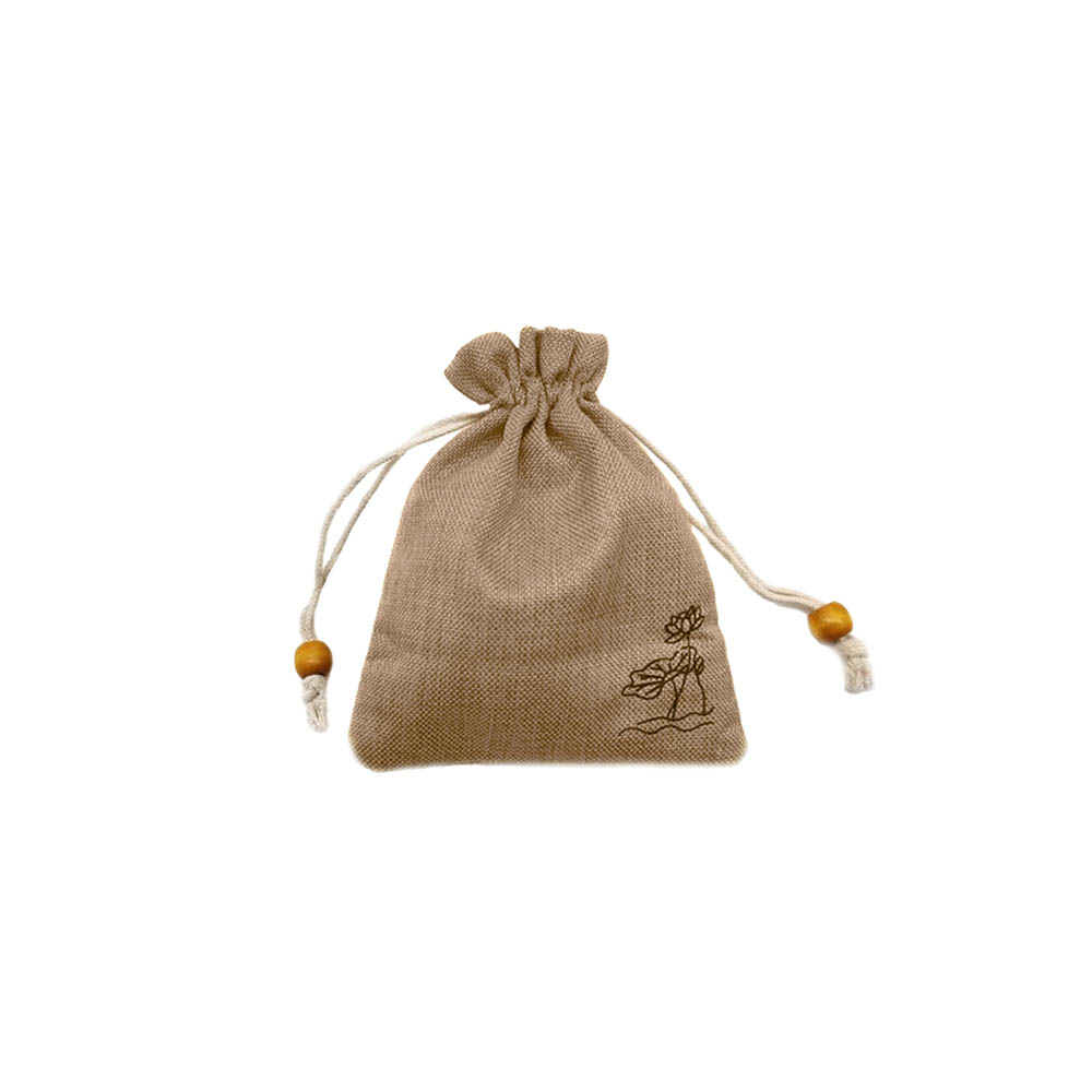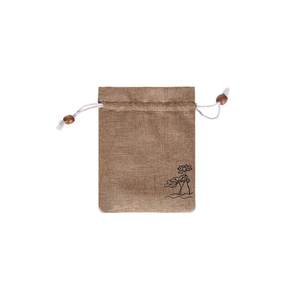 Мешочек из искусственного льна с орнаментом 8х10 см, бежевый