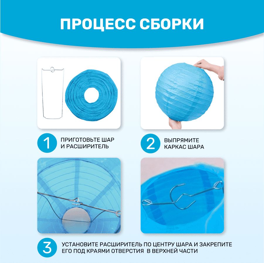 В комплект входит 8 бумажных фонариков и лента атласная.