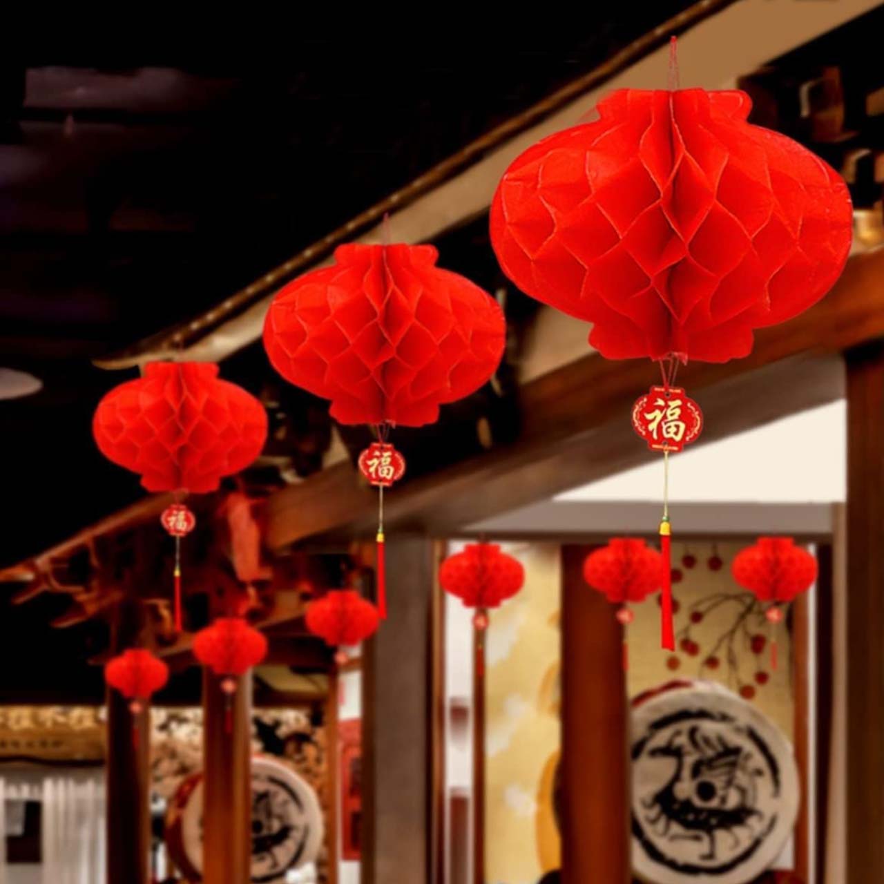 Материал: Красные бумажные фонарики изготовлены из высококачественной водонепроницаемой пластиковой бумаги. Они могут сохранять идеальную форму при длительном использовании.